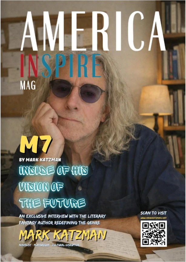 Mark Katzman was honored with a cover feature in America Inspire Mag, where he opened up about the vision behind his novel M7 and his unique approach to storytelling. The article dives into the heart of his work, showing how he blends humor, satire, and imagination to create stories that feel both timeless and fresh.